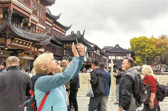 入境游客在上海豫园商圈观光 新华社发