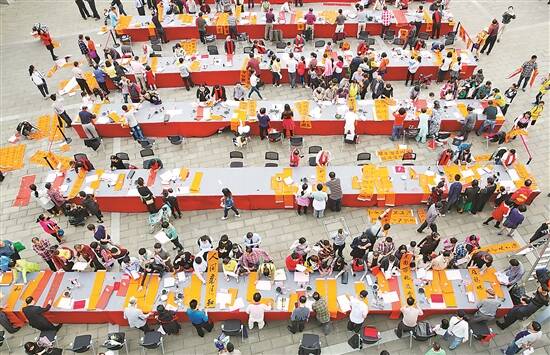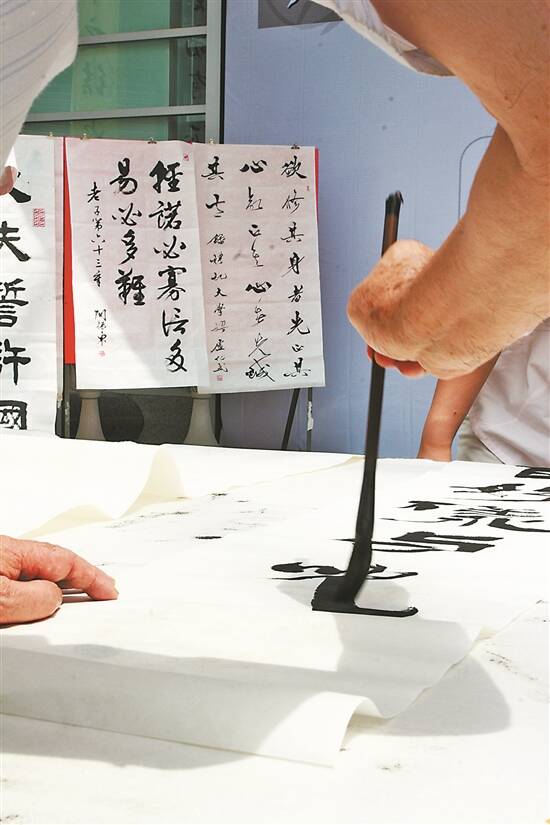 在东莞,形式多样的书法文艺活动丰富了群众和书法爱好者的文化生活,也得到了众多书法爱好者的高度关注和参与。元旦、春节“两节”期间,东莞在全市范围内广泛开展“我们的中国梦——文化进万家”东莞书法名家送万福进万家惠民公益活动,组织书法家相继在东莞文艺空间、可园博物馆、寮步镇横坑社区、南城宏图科技中心等场地挥春送福,以传统文化为载体,惠及广大群众近12万人(家庭)。以去年为例,东莞全市参加挥春送福活动共出动4000人次,义务书赠对联、福字和书法作品更高达12万幅。