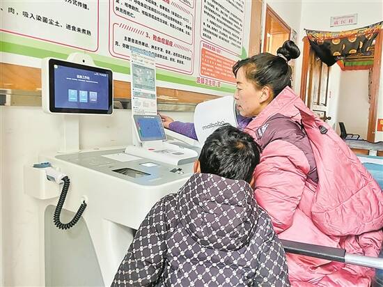 科技无远弗届,医疗可远程抵边。在派镇索松村兼职村医的次仁拉珍,小时候摔跤骨折,去拉萨的医院单程就要开车一天。现在她在村里的广东远程抵边医疗点,操作远程诊疗系统就可以为村民做健康服务,应对突发情况,解决基本慢病管理,监测用药情况。“每年还会培训两三次,家里的活也不耽误。”