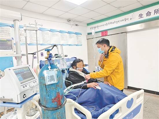工布江达县人民医院,郭嘉韵为一冠心病、心力衰竭患者开展经鼻高流量氧疗新技术 受访者提供