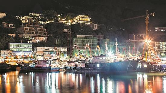 在大万山岛妈祖诞庆典的日子里,人们在这里敬海爱海,交流信息,整个海港成了“不夜天” 李晓晖 摄