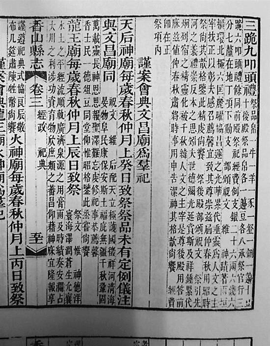 清道光七年(1827年)《香山县志》记载官方致祭天后神庙的定例及《祝文》 梁振兴供图