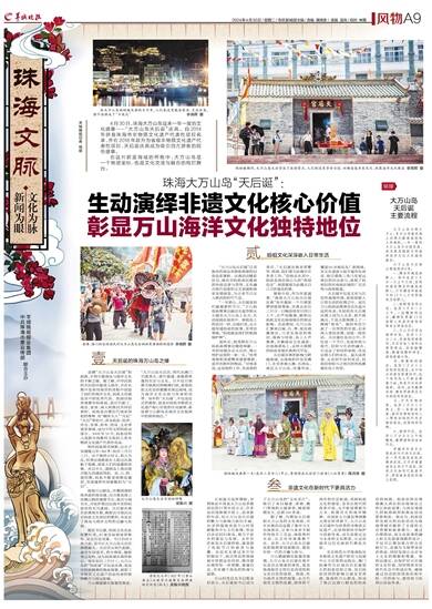 4月30日,珠海大万山岛迎来一年一度的文化盛事——“大万山岛天后诞”庆典。自2014年跻身珠海市非物质文化遗产代表性项目名录,并在2018年跃升为省级非物质文化遗产代表性项目,天后诞庆典成为吸引四方游客的民俗盛事。