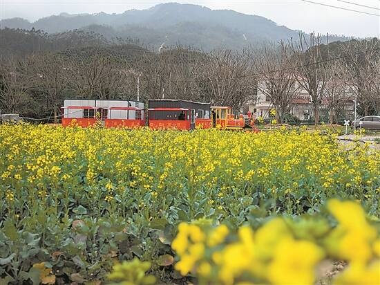 走在城西村忠心岗,道路宽阔、路面平整,两旁种着樱花树。马柏良介绍,近年来,鹤城镇投入约100万元将该村道从3.5米拓宽至5.5米,对沿路210米长的河堤进行加固并种植了草坪;同时发动热心乡贤,出资3000多万元铺设沥青路近1.2公里,修建了揽月亭、明月桥,种植了2200多棵樱花树,形成了一条樱花大道。樱花大道一旁,当地还打造了稻田、油菜花田等景观,田野间铺出蜿蜒小铁轨,用来运行田园轨道观光小火车。市民凌先生说,今年春季,樱花大道两旁樱花绽放、油菜花田金黄灿烂,坐着小火车游览,就像置身油画世界里。马柏良说,这两年的花季,都有超2万人次的游客到此赏花,庞大的游客群体为村内餐饮业、零售业带来了可观的经济收益。