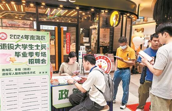 羊城晚报讯 记者张闻、通讯员黎惠沂摄影报道:近日,南海区退役军人事务局举办南海区2024年退役大学生士兵毕业季专场招聘会。