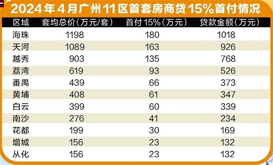 如果细化到每个楼盘看,它们的首付水平和上述平均水平有较大差距。例如,荔湾区不少项目主推中小户型,270万-280万元可购买七八十平方米三房,15%首付只需要不到40万元即可,比荔湾区整体平均93万元的15%首付水平明显降低。
