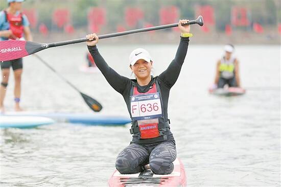 在今年“五一”假期落幕的中国桂林平乐2024“绿水青山”中国休闲运动挑战赛上,余冰夺得了女子单人桨板项目桂冠。本次赛事由国家体育总局水上运动管理中心和广西壮族自治区体育局、桂林市人民政府联合主办。“桨板实际上与扒龙舟是相辅相成的,只不过一个是单人运动,一个是团体运动,当队伍没有组织训练的时候,我就会去玩桨板,我觉得是龙舟成就了我。”余冰说,现在每天都会想着玩桨板或者扒龙舟,这是充实自己退休生活的最好方式。