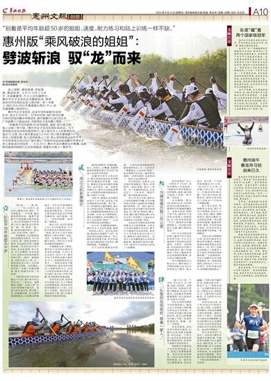 女子龙舟队能够成功组建,一方面有如李清晖般曾登船参赛的队员,另一方面还有一群酷爱水上运动的“姐姐”。队员郑娟告诉记者:“惠州的水域很广,水质也很好,由此形成了一批水上运动爱好者。”