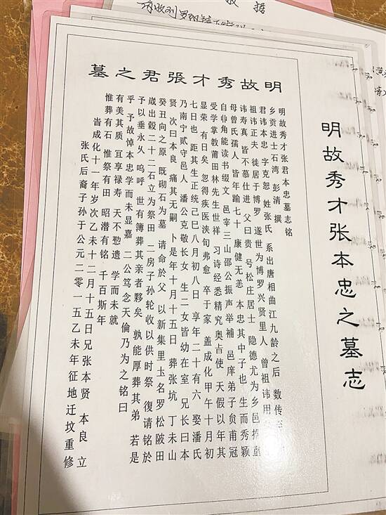 张氏后人现仅剩数篇博罗张氏名人的墓志