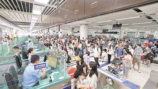 今年以来,累计查验出入境内地居民537.8万人次、港澳居民1048.6万人次、外籍人员35.1万人次,同比分别上升81%、93%、132%。口岸日均客流量超10.06万人次,单日出入境客流峰值达14.9万人次,累计查验出入境交通运输工具205.62万辆次。