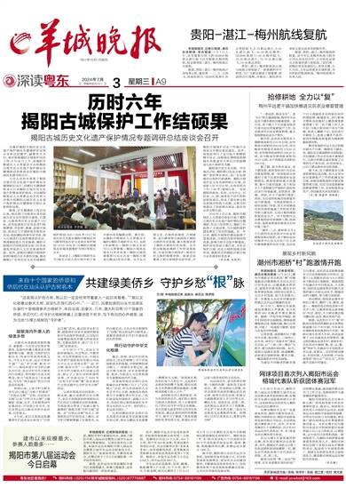 据悉,自专题调研工作启动以来,相关部门共摸查出具有较高历史文化价值的古建筑、古遗址、古街巷等历史文化遗产122处,对各处建筑历史信息进行收集整理,并拍照、测量、绘制平面图,形成近万字调研报告和初步名录;组织潮汕各地专家学者,深入古城进行全面的调查和走访,理清揭阳悠久历史脉络、揭阳古城城市空间格局变迁和130多处建筑单体的人文历史和建筑价值。此外,还推动《揭阳古城保护条例》顺利立法并颁布实施,推动编制《广东省历史文化名城揭阳保护规划(2021—2035年)》《广东省历史文化街区揭阳市榕城区西马路等四处历史文化街区保护规划(2022-2035年)》《揭阳古城建筑及环境风貌维护导则》等指引文本。