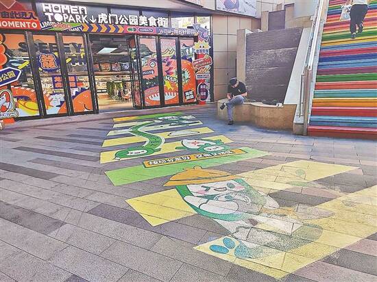 商场地板上贴有垃圾分类的卡通地贴