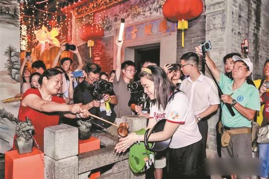 塔坡庙会是一个自带流量的社交平台。在逛庙会的市民游客中,有不少人都是和亲朋好友结伴而行,或者是约好了在庙会聚集。从线上社交平台的“刷屏率”来看,塔坡庙会无疑已是这个夏天佛山人最热门的“社交密码”之一。在庙会上,人们既可以尽情体验,也可以随手一拍“即出大片”。
