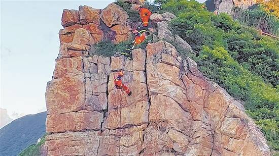 羊城晚报讯 记者李晓旭,通讯员苏颖欣、万缓、戴志鹏摄影报道:近日,大鹏新区消防救援大队接到报警称一青年在杨梅坑美人鱼洞游玩时被困悬崖中间,大队立即出动水头消防救援站2车12人前往救援。