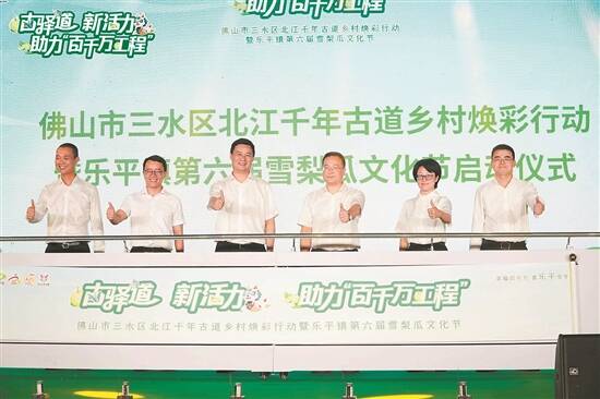 甘甜爽口黄金脆,馥郁农家白玉堂。7月19日,三水区北江千年古道乡村焕彩行动暨乐平镇第六届雪梨瓜文化节开幕,以“瓜”为媒,开启一场夏日文旅盛宴,推动北江沿线文旅资源“串珠成链”、集聚增势,推动“农文科旅”深度融合,进一步助力“百千万工程”建设走深走实,释放全域旅游新动能。