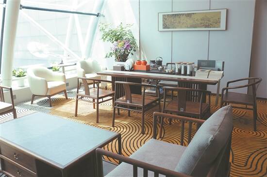 走进艺术高端休息室,从灯光照明,到空间布局,再到餐具设计,都能让旅客在休息室内感到典雅清新、静谧自然。通过大片落地玻璃,旅客可在贵宾室远眺飞机起飞、降落、滑行等过程,放松身心。