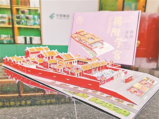 据悉,这所邮局为揭阳学宫主题邮局,于2023年底开业,以“文旅+邮政”的新模式,通过提供个性化的邮政服务,如提供揭阳十佳手信以及风景邮戳、风景明信片、“揭阳学宫”“进贤门”“揭阳楼”等揭阳有礼文创产品,打造“传播城市文化,创新邮旅融合”的综合服务场所,为传承红色基因、传播传统文化、助力旅游发展、满足用户用邮需求提供综合服务平台。揭阳学宫主题邮局的设立,有效解决了揭阳学宫附近邮寄明信片、购买揭阳特色文化产品不便的问题,更好地将揭阳文化传播至全国各地。随着暑期旅游旺季的到来,越来越多市民游客和集邮爱好者前来打卡,在感受浓厚文化氛围的同时,也感受着独特的用邮体验。据统计,今年上半年,揭阳学宫主题邮局共接待市民和游客5.2万多人次,营业收入近18万元,成为新晋“网红打卡地”,推动“旅邮”业态新发展。同时,揭阳学宫主题邮局在暑期联合周边幼儿园开展了多场邮政文化宣传活动,让小朋友现场零距离体验邮政服务,感受邮政文化魅力。