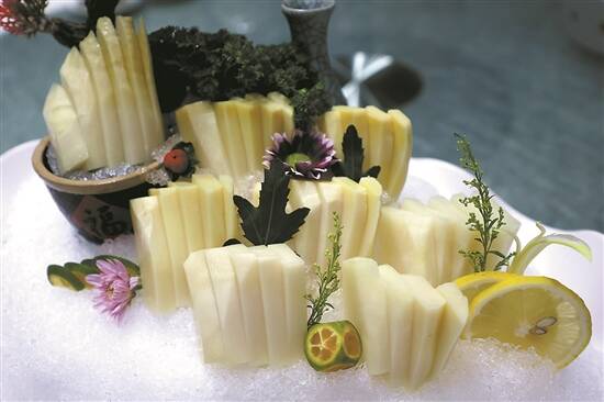 “让游客品尝到地道的北滘味,让本地人的舌尖回忆家乡味。”为此,苏志潜与粤菜师傅们齐齐开发食材,推出创新粤菜。蜂巢竹笋拼百花荔枝、竹笋拆鱼羹、凤眼果焖烧腩……二十四节气里,一道道节气菜式应运而生。