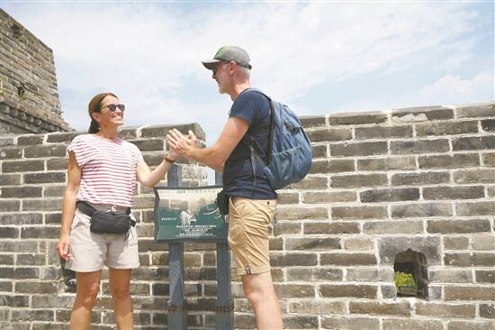 外国游客打卡北京慕田峪长城 羊城晚报记者 黎存根 摄