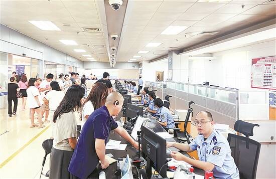 记者日前在中山市公安局出入境办证大厅看到,咨询区、等候区、办理区内,前来办理各项业务的市民有序分流,现场忙而不乱。中山市公安局出入境管理支队副支队长王永华告诉记者,自6月份暑期来临以后,办证大厅每天的接待量大幅增长,支队全体工作人员紧密协作,确保每一位群众的办事需求得到满足。