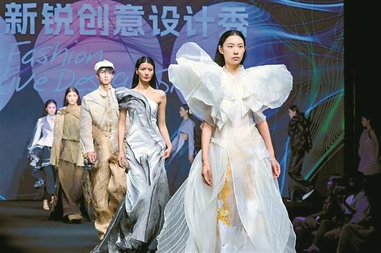 中国时尚新锐创意设计秀则吸引了众多优秀的设计品牌,来自全国40多位独立设计师、著名院校教师的创意设计作品汇集深圳,臻选出45套作品,通过“展览+秀场”“传统+时尚”独特方式,展演了中国时尚新锐的创意设计。