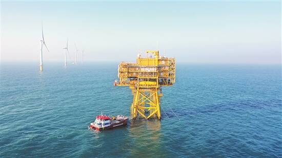 在揭阳惠来碧波万顷的海面上,风电机组整齐列阵,白色扇叶迎风转动,将阵阵海风转化为绿色电力送入千家万户,为揭阳高质量发展增添蓝色动能。