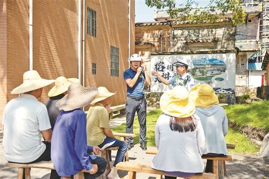 大榕树下来开讲,小板凳上学安全。夏日炎炎,小洞村翠绿而葱郁的榕树下,“榕树下大讲堂”如期开讲,村民们一边在石凳上纳凉,一边学习交通安全、反诈、禁毒知识。“未知链接不点击、陌生来电不轻信、个人信息不透露、转账汇款多核实”“佩戴安全头盔关键时刻能保命”……“全民宣防”队员带来生动的讲述,现场不时传来阵阵掌声。