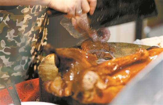 保持传统制作技艺的同时,烧鹅也不断与时俱进。叶伟良表示,为了适应食客口味,还创新推出用墨鱼汁、松露酱、牛奶等配料制作的黑松露烧鹅,深受顾客喜爱。