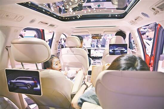 参观者在北京车展上体验一款使用华为鸿蒙系统的汽车 新华社发