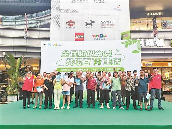 为提升观澜街道基层治理效能,进一步夯实生活垃圾分类基础,8月15日下午,龙华区观澜街道办事处在观澜湖新城开展“全民垃圾分类,共绘百‘分’生活”垃圾分类基层治理百分百行动全覆盖宣传活动,推动观澜街道百分百行动向纵深发展。