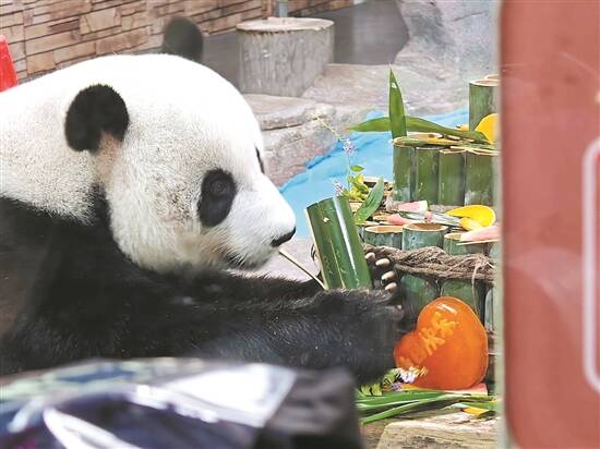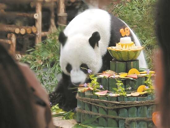 日前,东莞香市动物园迎来了大熊猫“珍大”“双儿”来莞的第七个年头。当天,东莞香市动物园举办了来莞7周年熊猫生日森友会,为大熊猫哥俩庆祝18岁生日。生日会现场,氛围爆棚!不仅有精美的双层“生日蛋糕”,还有市民送上的祝福。