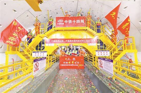 8月19日,在珠江口水域下106米处,随着“深江1号”盾构机顺利完成3590米既定掘进任务,由中铁十四局负责的深江铁路珠江口隧道顺利抵达海底最深处,这是中国大盾构水下掘进的最深纪录,也是世界高铁盾构隧道最深纪录。工程建成后,中国高铁将在百米海底飞驰。