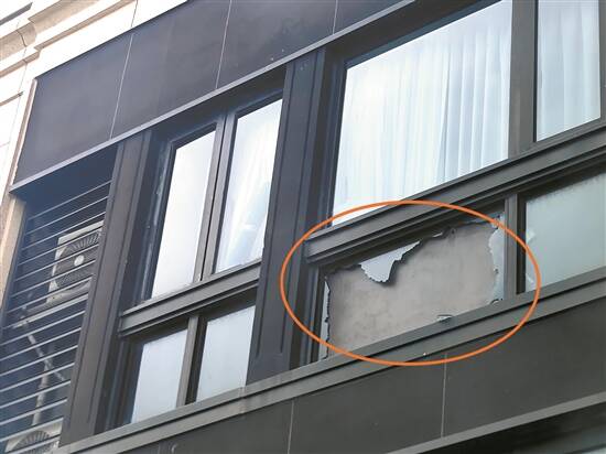 业主杨女士告诉记者,玻璃爆裂后会有碎片坠落,而小区内常有许多老人小孩外出走动,令人难免忧心从上空坠落、或是地上散落的玻璃碎片伤人的情况发生。