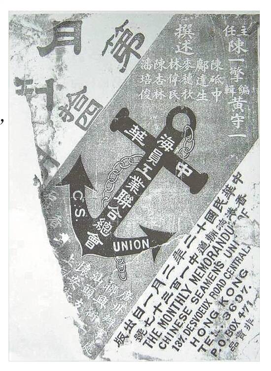 香港海员工会的月刊封面,林伟民的名字在右上角(左三)