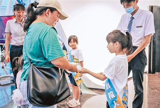 孩子们在珠海大剧院不仅能享受艺术的乐趣,还能结交新朋友,共同编织难忘的夏日回忆。今年,珠海大剧院再次升级“打开艺术之门”的互动模式,联动海韵城商家,设置多项全新互动项目,在演出前摆设摊位进行艺术普及、特产售卖、动物互动等活动,打造观演前的休闲娱乐空间,为家长和孩子提供吃喝玩乐一站式服务。除此之外,珠海大剧院还为孩子们举办了“艺见未来·生活冒险家之职业体验”。
