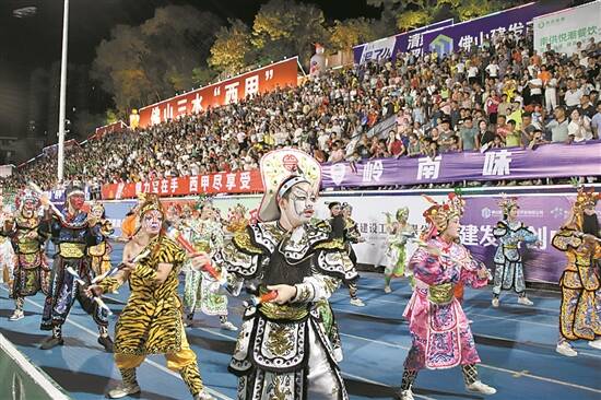 潮汕英歌舞亮相佛山“西甲”赛场 吴泳摄