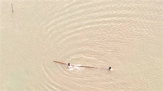 警辅人员发现,溺水者在河中央漂浮,竹竿长度不够,且溺水者在水中时沉时浮,已有力竭迹象。形势危急,一名警辅人员二话不说,立即脱掉衣物,推着竹竿往溺水者游去,另一名警辅人员则在岸上等待增援警力到达,并通知120医护人员到现场协助救治。