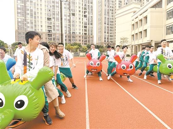 广东省实验中学金湾学校附属初中师生们正在享受大课间时光 陈一典 摄