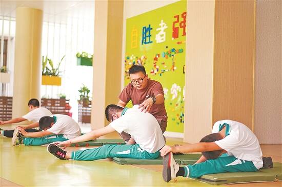 教师郑永祺正指导学生进行热身运动 受访者供图