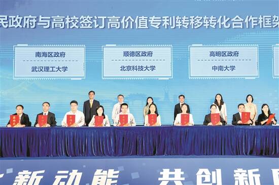 同时,为发挥高校创新优势,推动高校优质创新成果和专利技术在佛山企业中实现转移和转化,加快专利的产业化进程,五区政府与武汉理工大学、中南大学、西安建筑科技大学、江南大学等高校签订高价值专利转移转化合作框架协议。合作各方将在成果转化、人才培养与交流、产业转型升级等方面携手,促进知识、技术、人才的流动与共享,为区域经济发展提供有力支持。