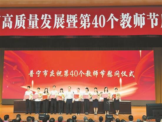 在第40个教师节到来之际,为大力弘扬教育家精神,营造全社会尊师重教的浓厚氛围,激励广大教师和教育工作者落实立德树人根本任务,积极投身教育强市建设,9月9日,揭阳普宁市举办了教育高质量发展暨第40个教师节庆祝大会,总结教育发展成果,表彰一批先进典型,共商教育发展大计。