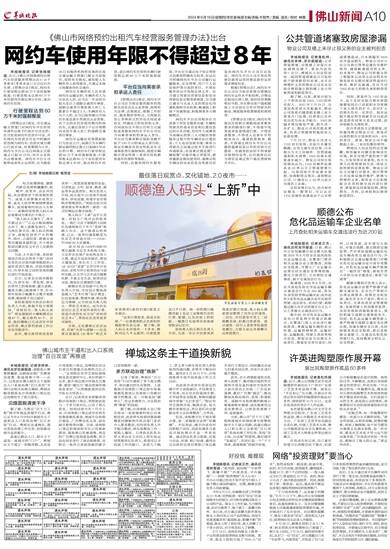 羊城晚报讯 记者张闻报道:近日,《佛山市网络预约出租汽车经营服务管理办法》(以下简称为《管理办法》)正式出台并生效。《管理办法》规定,网约车行驶里程达到60万千米时强制报废;行驶里程未达到60万千米但使用年限达到8年时,退出网约车经营。