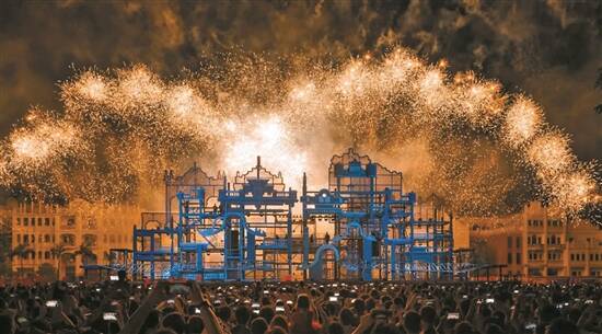 国庆期间开平赤坎华侨古镇的烟火秀吸引了大量游客入场“打卡” 赤坎华侨古镇供图