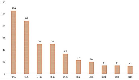 上榜企业数量前十的省份(省、直辖市、自治区)