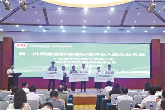 近年来,江门市把实施质量强市战略作为推动高质量发展的重要抓手,纳入江门市“十四五”规划和县域经济考核指标体系,连续五年在全省质量考核中获评A级。全市各产业链质量过硬、品牌响亮的质量标杆企业不断涌现,质量“软实力”获得金融机构一致认可。据江门市市场监管局质量发展科有关负责人介绍,为落实国家、省、市出台的稳经济一揽子政策措施,帮助企业纾困解难,同时激发广大企业重视质量、争创品牌的意识,江门市市场监管局先行先试,于2022年开始探索质量融资增信。