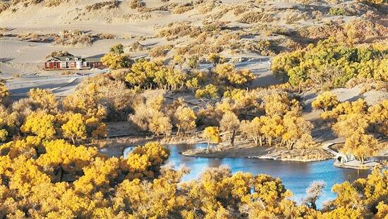 内蒙古阿拉善盟额济纳旗的胡杨林进入最佳观赏期 新华社发