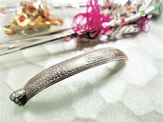 除了改动,还有精心设计的款式。“现在有了网络,我可以上网搜索到各种款式,逐渐学会了自己画图设计,并找到厂家制作部分零件,随后自己将零件拼接成喜欢的样式。”苏送梅边说边拿出一支凤凰展翅金簪向记者展示簪子的细节,“就说这支簪子吧,凤凰的动作样式、细节纹路是我设计后,找到厂家制作出来的样式。因为难度高,我换了好几家厂房订做,光样式图便修改了五版。”她笑道,因为凤凰制作难度高,厂家也只愿意制作一支样板发簪,这支凤凰展翅金簪如今是独一无二的发簪。