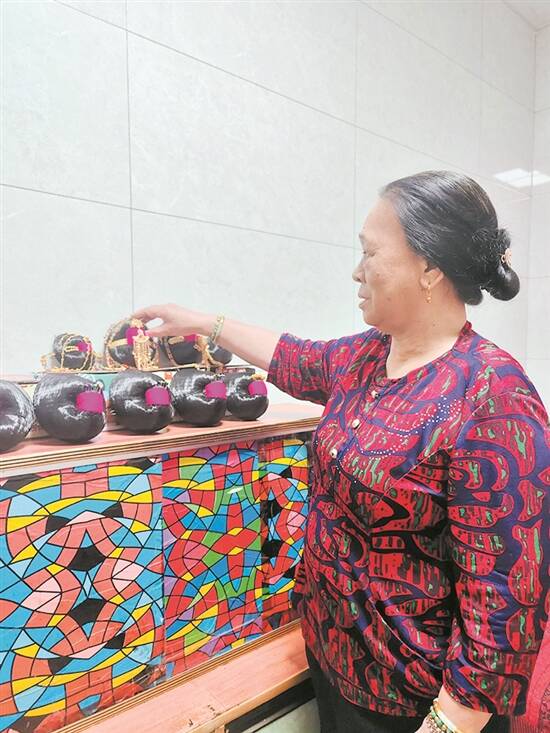 在苏一妹的工作室柜子上,摆放着几个大小不一的假发髻