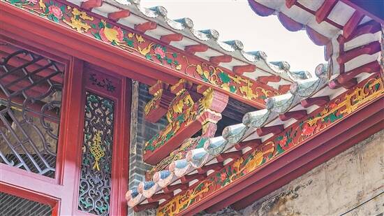 如今,在大夫第的大门上,朱红色的“大夫第”3个大字仍在彰显着古宅曾经的辉煌。走进大夫第,首先映入眼帘的便是前厅屏风门上方悬挂着的“赏穿黄马褂”牌匾,从中不难看出蔡锦青往昔的显赫地位与非凡功绩。沿着大宅内部走一圈,可以发现木雕繁多,如屏风、斗式梁架、廊架上雕刻有麒麟、兔、狮、人物、景物、花草等形态各异、栩栩如生的吉祥图案。如果细细观察的话,还可以留意到在上厅前端两侧下方,有锦鸡石雕。据了解,在清朝时期,二品文官的官服上绣的便是锦鸡。