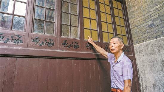 值得一提的是,大夫第中堂靠着门厅天井的一侧,两头各有一块木制的隔板,木板上有一扇扇小玻璃,大部分是透明色,小部分偏黄色。乍一看,这些玻璃与常见的没什么区别。“那些偏黄色的是古宅建起来就有的,后来有些破损了就用现代玻璃补上,当时申报广东省文物保护单位时,有专家前来考察,说原有的是进口玻璃。”蔡育告诉记者,古宅在上世纪八十年代还住有一百多人,房间不够时,便用这些隔板将中堂间隔成房间住人,后来族人逐渐搬离。